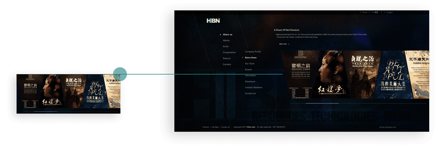 首頁(yè)banner進(jìn)行藝術(shù)化創(chuàng)作,通過(guò)輪播切換的方式展示華錄百納的知名作品,以作品帶動(dòng)品牌,強(qiáng)化企業(yè)品牌價(jià)值