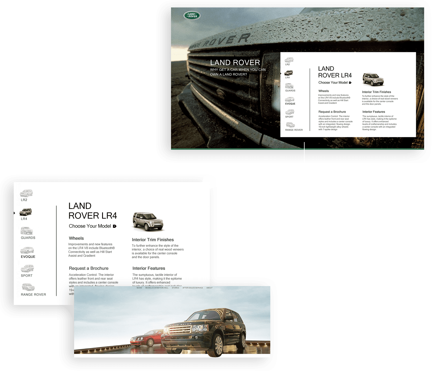 網(wǎng)站在進行創(chuàng)意設(shè)計時著重表現(xiàn)路虎車的越野特性,高度契合路虎品牌及產(chǎn)品定位,