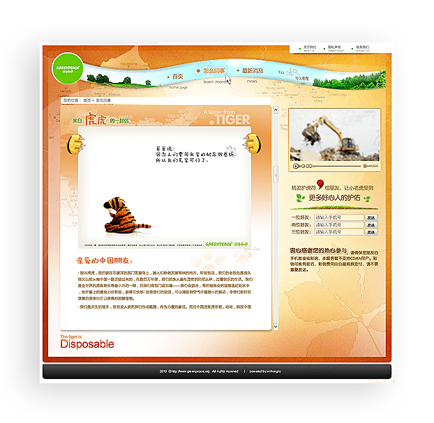 綠色和平網(wǎng)站舉辦《別讓清風(fēng)卷走老虎》等多個線上公益活動,吸引用戶參與。新鴻儒長期負(fù)責(zé)其網(wǎng)站的維護和運營推廣工作,保障網(wǎng)站穩(wěn)定、有效運行。