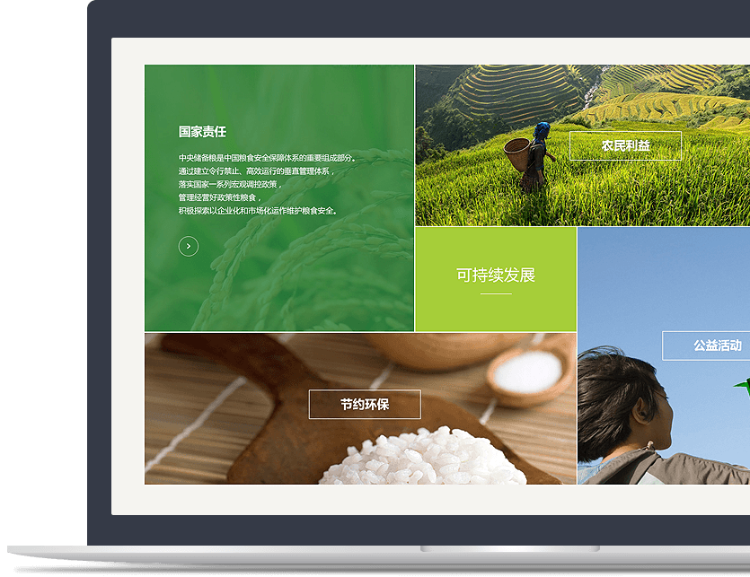 中儲糧官網(wǎng)采用扁平化ICON的方式,集中展示儲備管理、輪換購銷、專項調(diào)控等多元業(yè)務(wù),在保證用戶便于閱讀的基礎(chǔ)上,通過創(chuàng)意、交互吸引用戶關(guān)注。