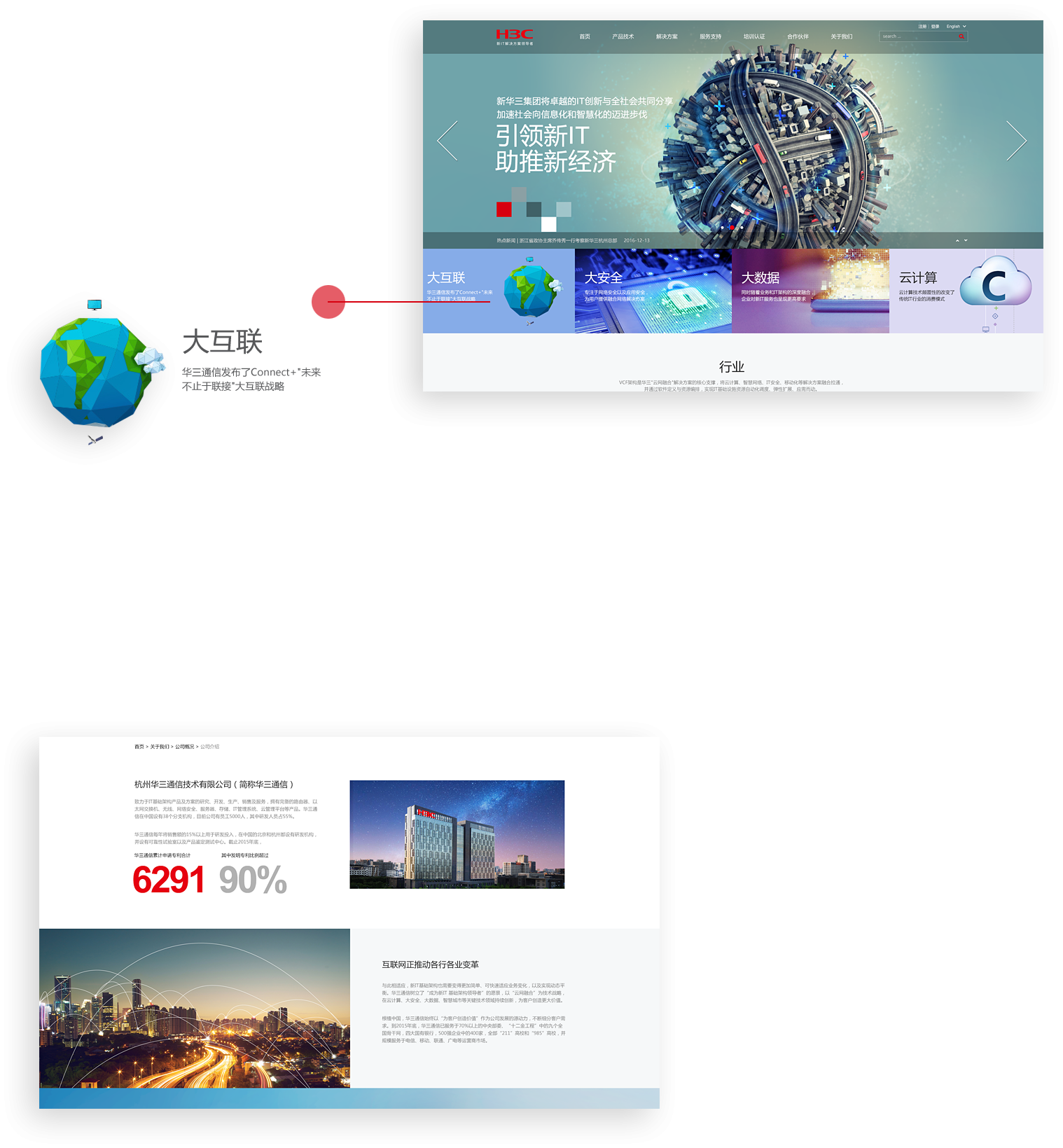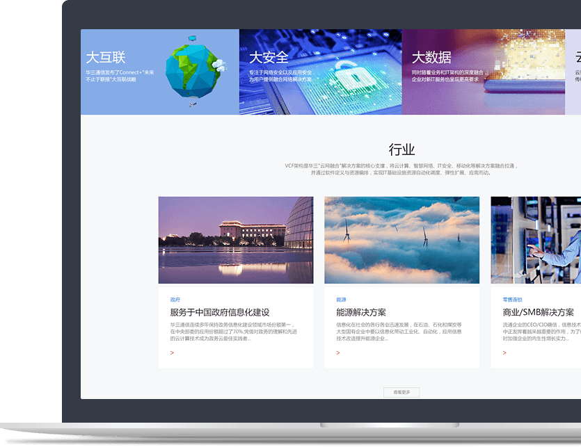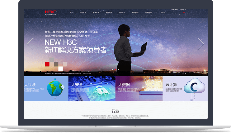 將“科技感”“創(chuàng)新力”融入品牌官網(wǎng),順應色塊化的流行趨勢,從視覺、交互、情感多維度提升品牌感知力, 成功打造H3C在互聯(lián)網(wǎng)領域的品牌標簽。