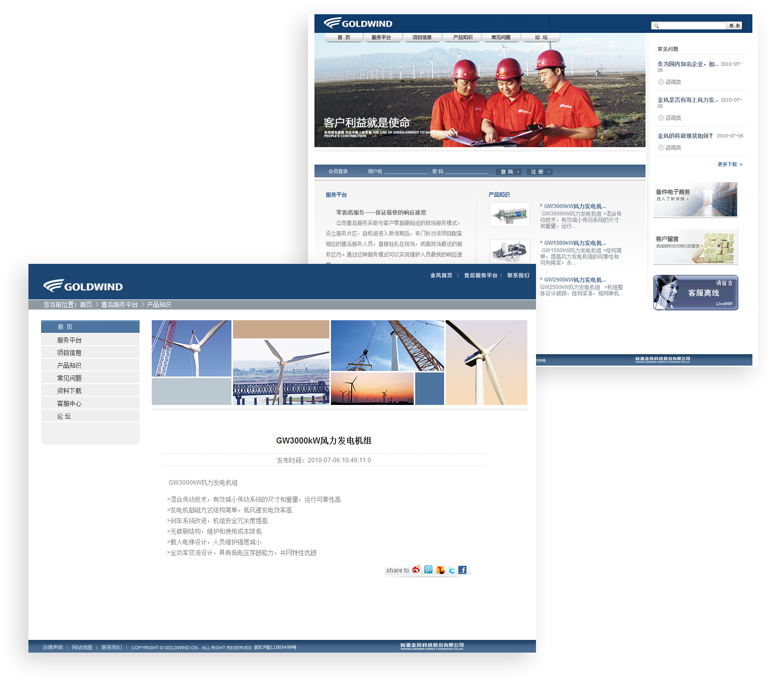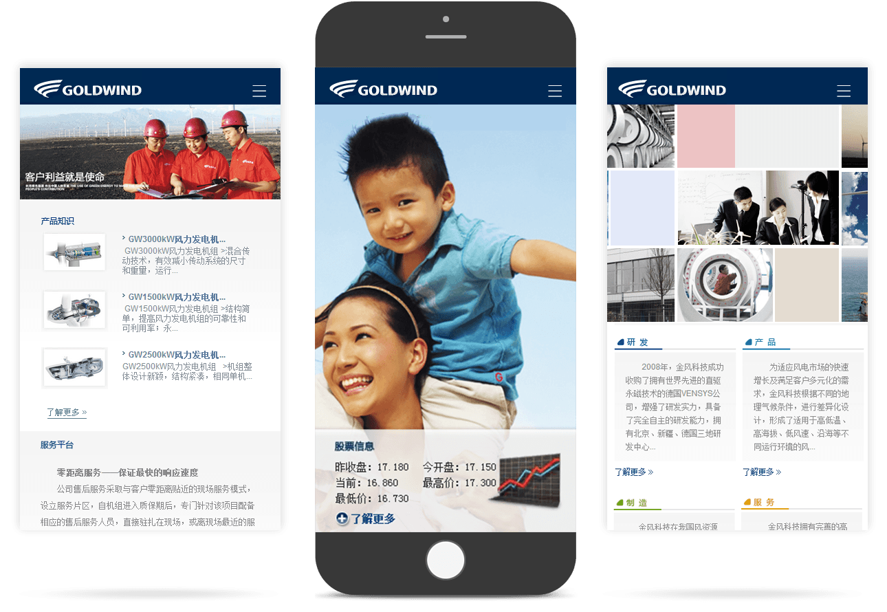 網(wǎng)站整體設(shè)計(jì)契合企業(yè)的領(lǐng)域?qū)傩?,兼顧品牌與產(chǎn)品雙重需求,視覺效果簡潔大氣,成 功塑造金風(fēng)科技創(chuàng)新、科技、國際化的品牌形象。