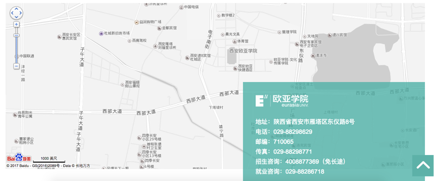 官網(wǎng)首頁采用多屏的視察滾動的方式呈現(xiàn)。通過鼠標(biāo)滑動,每一屏都以不同的主題、形象和技術(shù)呈現(xiàn),給訪問者帶來驚喜。其中,包括對【愛上歐亞,愛上未來的你】等主題價(jià)值的提煉;以微視頻為背景,以數(shù)字化的方式呈現(xiàn)歐亞學(xué)院的實(shí)力和優(yōu)勢;以360度看校園的智能交互,實(shí)時(shí)展現(xiàn)校園風(fēng)貌;對接地圖API接口,便于學(xué)生/家長及時(shí)找到學(xué)校位置。