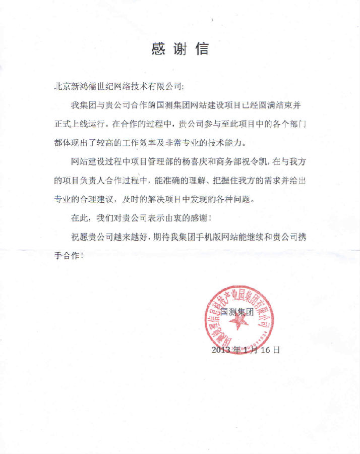 項(xiàng)目完成之后,客戶也是給我們發(fā)來了感謝信,以示感謝!