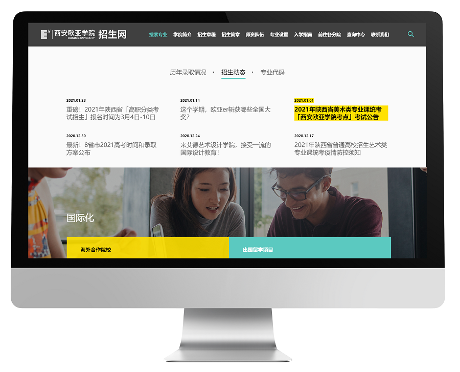 本次項目主要目的是通過對招生網(wǎng)站的升級,面對互聯(lián)網(wǎng)環(huán)境下成長的全新一代準(zhǔn)大學(xué)生進(jìn)行品牌宣傳,提升西安歐亞學(xué)院品牌形象、擴(kuò)大品牌聲量、最終提升招生工作。新鴻儒服務(wù)西安歐亞學(xué)院已有11年,為數(shù)字化校園系統(tǒng)提供迭代更新、系統(tǒng)升級、各平臺系統(tǒng)的融合擴(kuò)展工作,得到了院方各領(lǐng)導(dǎo)的高度認(rèn)可與支持。