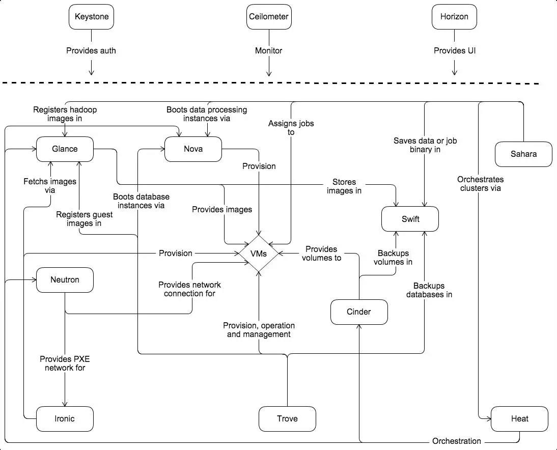 Dashboard(Horizon):自服務、權限、圖形化界面。