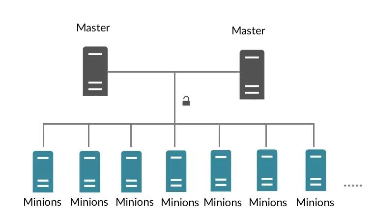 從部署結構上看,SaltStack的在部署上可以分為master和minion兩個部分,其中master相當于統(tǒng)領所有機器的總管,而minion則是部署在被管理機器上面的agent進程,master通過網(wǎng)絡將配置管理相關的操作下發(fā)到minion,由minion在對應機器的本地執(zhí)行。典型的部署例子如下圖所示: